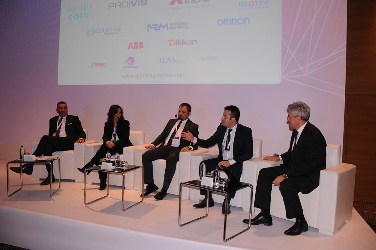 Zirvede, Endüstri 4.0 ile birlikte tüm sektörlerin iş yapış biçiminin temelden değişeceği ifade edildi. Endüstri 4.0’ın tüm dünyanın entegre olmaya çalıştığı en önemli sanayi devrimi olarak nitelendirildiği belirterek, bu modelin odağında esnek ve kişiselleştirilmiş üretimin, yani müşterinin bulunduğu vurgulandı. 2010 yılı ile 2020 arasında yani 10 yıllık bir süreçte insanoğlunun ürettiği verinin 50 kat artmasının beklendiği ifade edilirken, insanlık tarihinin hiçbir döneminde böyle bir artış sağlanmadığına dikkat çekildi. Siber fiziksel sistemler, gerçek zamanlı bilgi akışı, robotlar arası iletişim, 5 yıl içinde takılacak çipler ve TC kimlik numaraları yerine geçen IP numaraları da zirvede en çok konuşulan başlıklar arasında yer aldı. Endüstri 4.0 konusunda Türkiye’nin ve İzmir’in geride kalmadığına, bu alana ilgi duyan ve yatırım yapan birçok firmanın bulunduğuna dikkat çekilen toplantıda, hızlı hareket edilmesi halinde avantajlı konuma geçilebileceği, Endüstri 4.0 ile birlikte Türkiye’nin farklı açılardan rekabet avantajı yakalayabileceği görüşüne varıldı. Son olarak dönüşümle birlikte iş dünyasına kazandırılacak yeniliklerin ve robotların, çalışanların yerini almayacağını belirtilerek, makine, robot, çalışan etkileşiminin çalışanlarda yeni yetenekleri açığa çıkaracağına vurgu yapıldı. Gelecek kış Türkiye’nin bu konudaki yol haritasının açıklanmış olması da planlananlar arasında yer almakta. Her gün daha fazla kişi tarafından tartışılan bu devrimin, Dünya ile rekabette Türkiye için hayati bir önem taşıdığının vurgulandığı toplantıda, Türkiye’nin bu sürecin gerisinde kalmaması adına hemen harekete geçilmesi gerekliliğine de dikkat çekildi. “Biz Başlıyoruz” temasıyla düzenlenen “Sanayide Dönüşüm ve Endüstri 4.0 Zirvesi”nin bu bilinçle düzenlendiği belirtilirken, tüm şirket yetkililerine bu değişimin bir parçası olması çağrısı yapıldı.